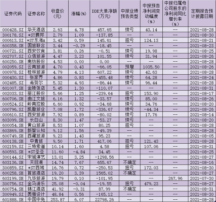 表:8月3日旅游酒店股市場(chǎng)表現(xiàn)一覽