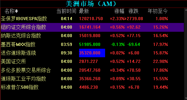 隔夜美洲股市普漲,僅墨西哥MMX指數(shù)微跌0.13%。在基建計劃利好消息的刺激下,周二美股三大股指齊收漲,納指與標(biāo)普500指數(shù)創(chuàng)歷史新高。納指史上首次站上15000點關(guān)口。中概股普遍上揚。
