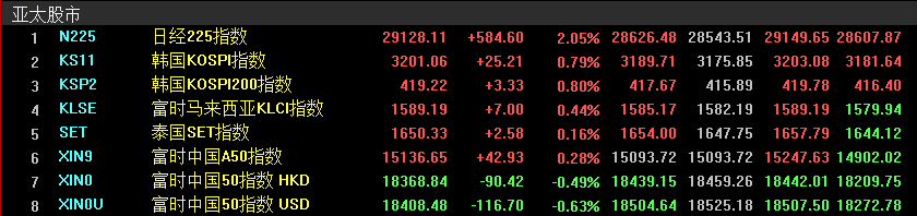 歐股上周普遍下跌,德國(guó)DAX指數(shù)周跌幅0.45%,法國(guó)CAC40指數(shù)周漲幅0.12%,英國(guó)富時(shí)100指數(shù)周跌幅0.14%。亞太主要股指漲勢(shì)明顯,日經(jīng)225指數(shù)周漲幅5.38%,韓國(guó)KOSPI指數(shù)周漲幅2.14%。