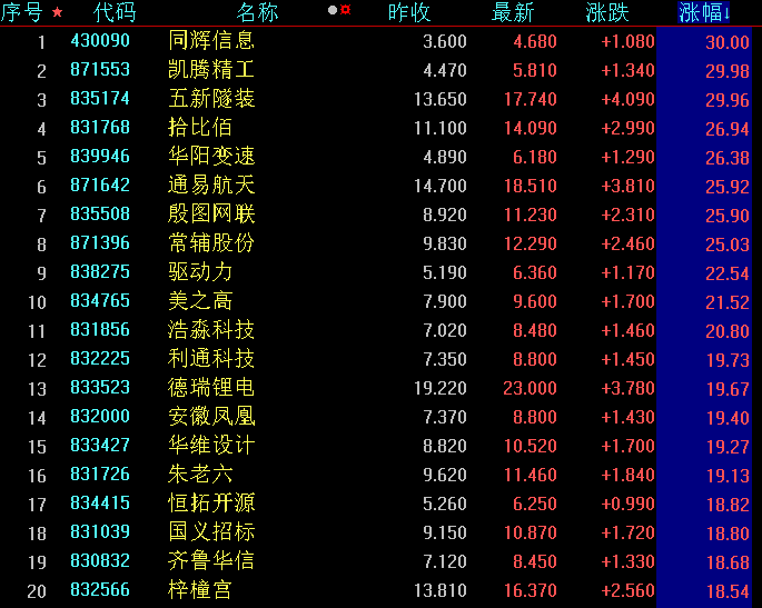 值得關(guān)注的是,新三板精選層周一盤(pán)中集體大漲,42只新三板精選層股票上漲幅度超過(guò)10%,占比逾六成。