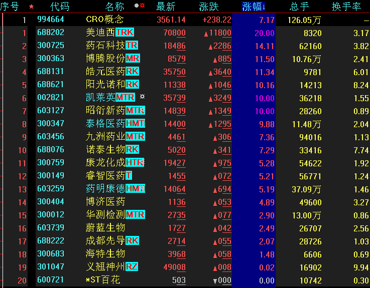 CRO概念:美迪西、凱萊英、昭衍新藥等個(gè)股紛紛漲停。