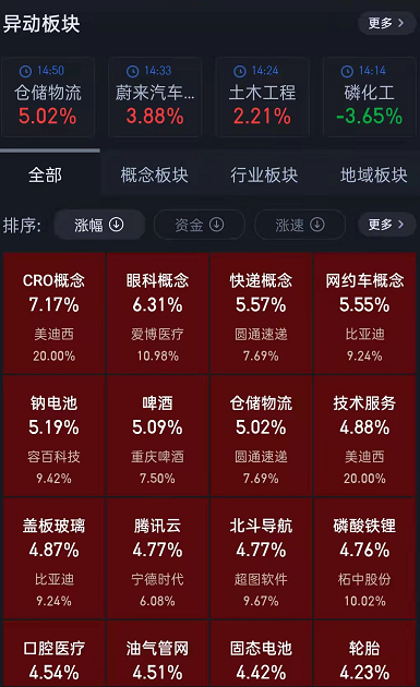 概念板塊方面,CRO概念、眼科概念、快遞概念等異動(dòng)明顯,漲幅均在5%以上。