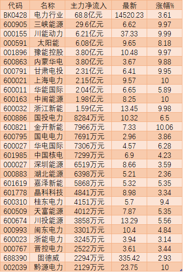 68.8億元資金流入電力板塊