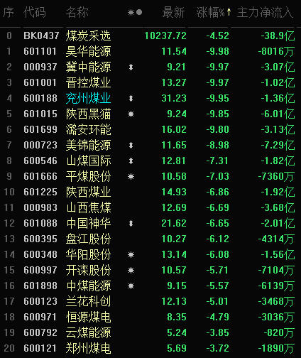 煤炭采選下跌4.52%