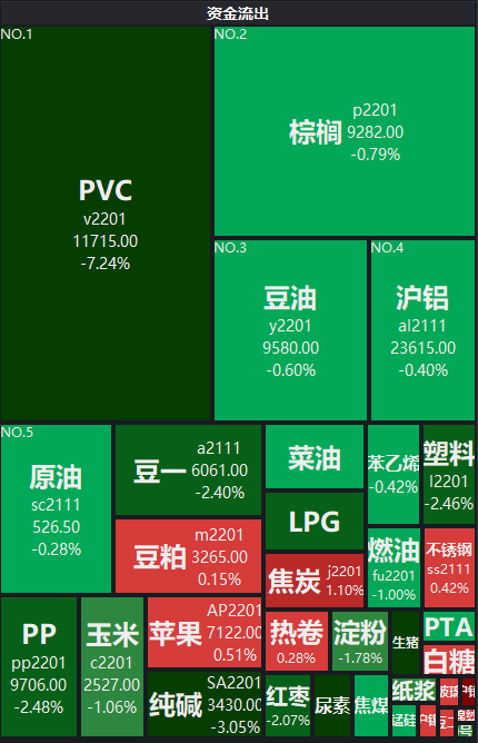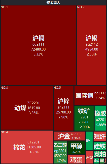 國內(nèi)商品期貨方面,有色金屬漲幅居前,滬鋅主力合約漲停,創(chuàng)2018年3月以來新高;滬鉛、滬銅等漲超3%,滬金、滬銀漲超2%;能源化工跌幅較大,PVC跌超7%,生豬跌逾5%,尿素跌超4%,鄭醇、純堿跌超3%。動(dòng)煤首次收于1600元關(guān)口上方。