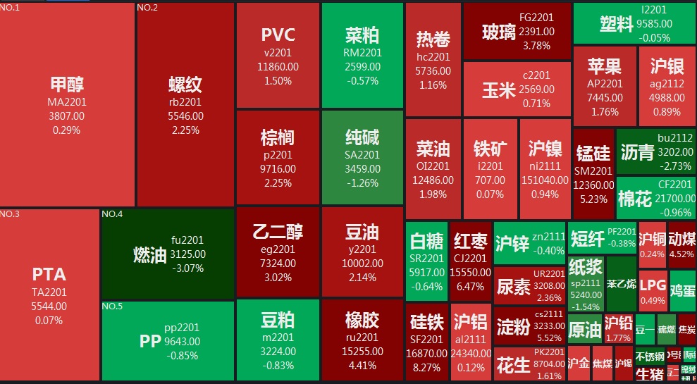10月19日,國內(nèi)商品期貨大面積飄紅,硅鐵主力合約漲逾8%,紅棗主力合約漲逾6%;動力煤尾盤跳水,豆油上破10000元整數(shù)位關(guān)口。20號膠(NR)、錳硅、淀粉、主力合約漲逾5%,焦炭、橡膠主力合約漲逾4%。截至收盤,動力煤漲4.52%,報1835.6元;豆油漲2.14%,報10002元。