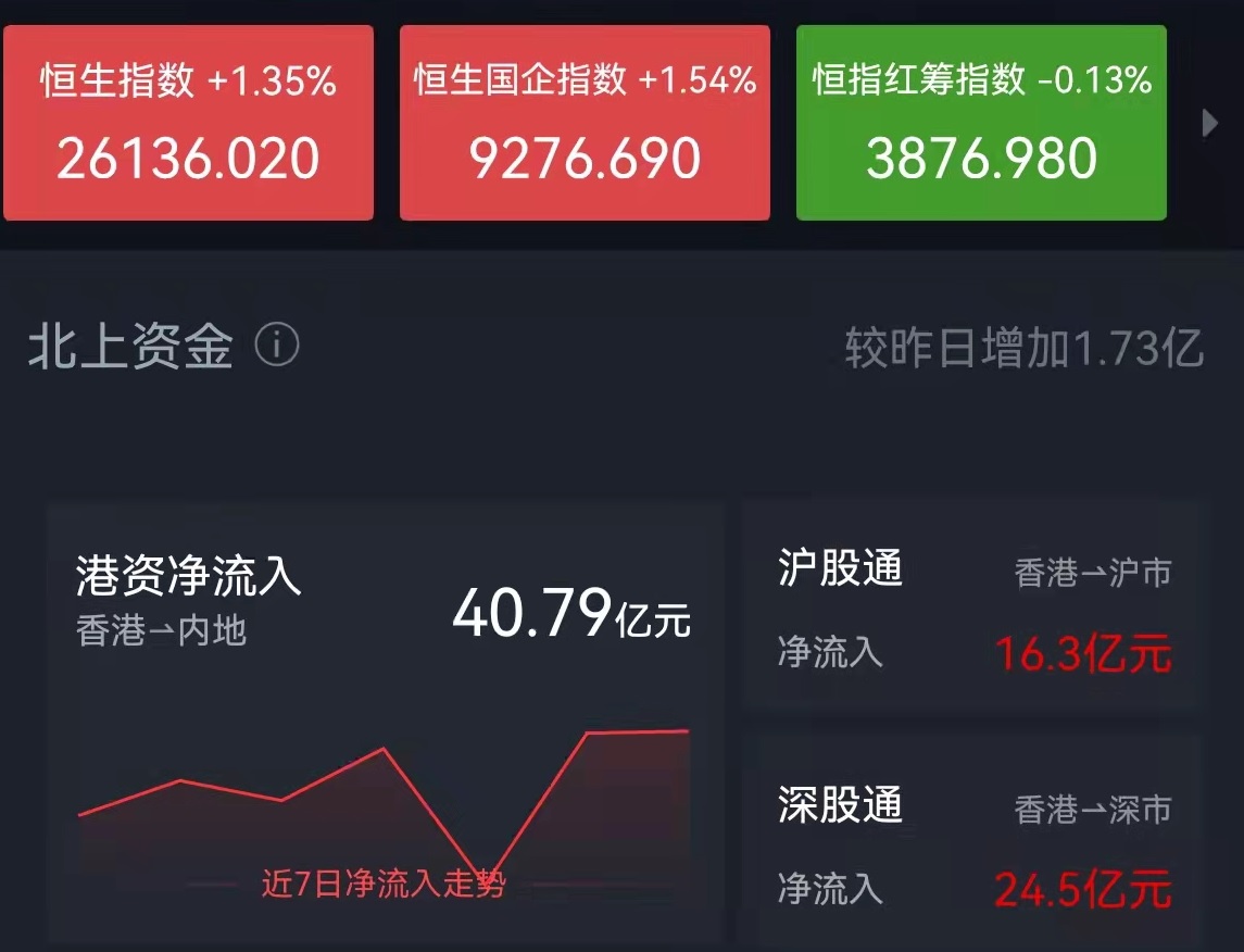 港股:恒指漲1.35%資訊科技板塊領(lǐng)漲