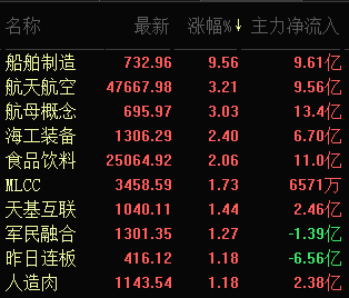 熱點(diǎn)方面,涉軍工概念大漲。