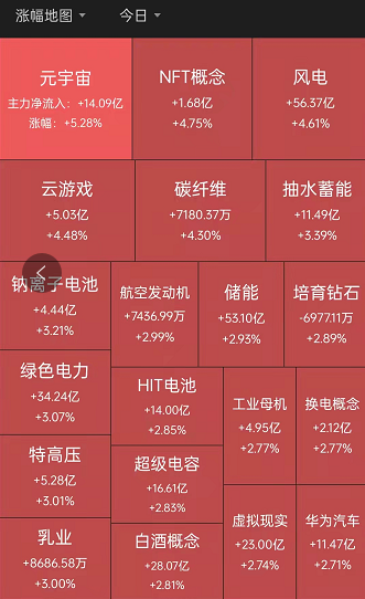 金百臨咨詢資深分析師秦洪認(rèn)為,周四A股市場出現(xiàn)普漲態(tài)勢,不僅主要指數(shù)均出現(xiàn)較強力度的拉升行情,而且,除了煤炭、CRO等少數(shù)板塊有所調(diào)整,大多數(shù)行業(yè)板塊均出現(xiàn)回暖態(tài)勢,尤其是軍工股、元宇宙板塊股、風(fēng)電等新能源電力股更是持續(xù)活躍,已形成良好的賺錢示范效應(yīng),從而有望吸引更多的買盤力量涌入。