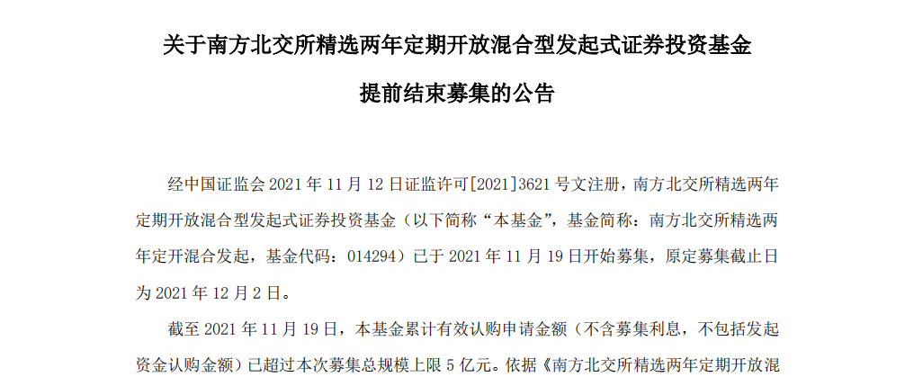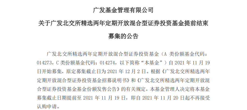 3家基金公司率先發(fā)布提前結(jié)束募集公告