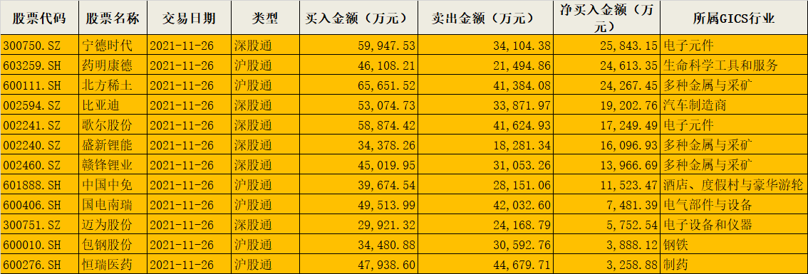 據(jù)記者梳理,寧德時代、藥明康德、北方稀土、比亞迪、歌爾股份、盛新鋰能、贛鋒鋰業(yè)、中國中免等個股當(dāng)日受到北上資金凈買入金額超過1.1億元。