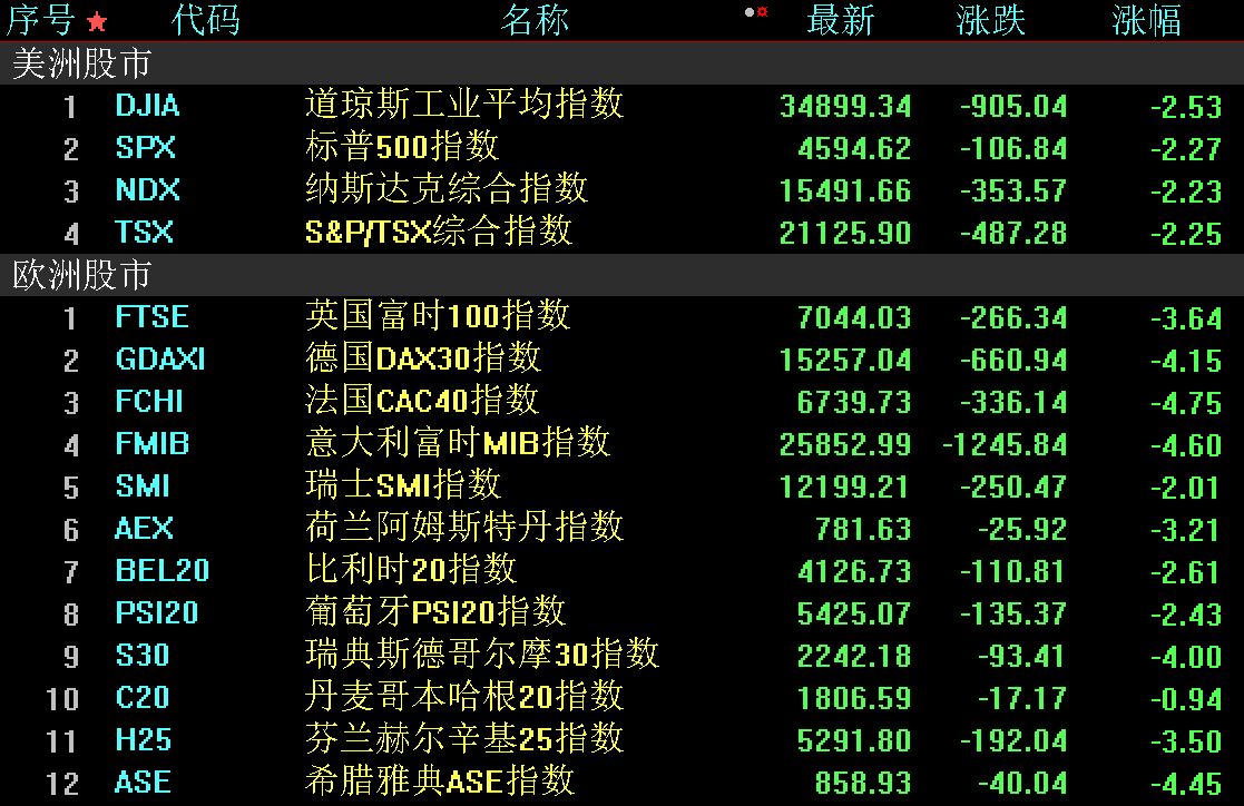 山雨欲來風(fēng)滿樓,外圍市場對A股走勢的影響備受關(guān)注。11月26日,歐美主要市場呈現(xiàn)全線下跌態(tài)勢。其中,道瓊斯指數(shù)跌逾900點(diǎn),創(chuàng)下年內(nèi)最大跌幅。納斯達(dá)克指數(shù)跌幅達(dá)2.23%、英國富時100指數(shù)下跌3.64%.....。