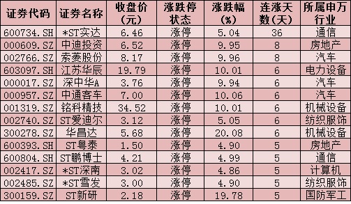 5月19日,房地產(chǎn)板塊漲幅居首,達(dá)2.37%。其中,南國置業(yè)、福星股份、中洲控股、天津松江、我愛我家、數(shù)源科技、京投發(fā)展、中國武夷等8只個股集體漲停。