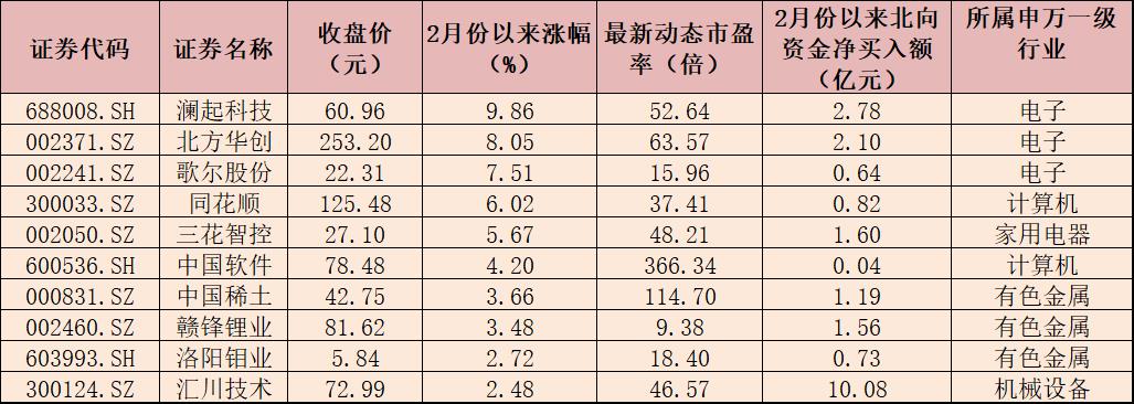 值得一提的是,經(jīng)過連續(xù)4天的凈流出之后,2月9日,北向資金扭轉(zhuǎn)流出態(tài)勢,全天凈買入121.01億元?;仡檨砜?,2月份以來,截至2月9日收盤,北向資金期間累計凈買入117.28億元。