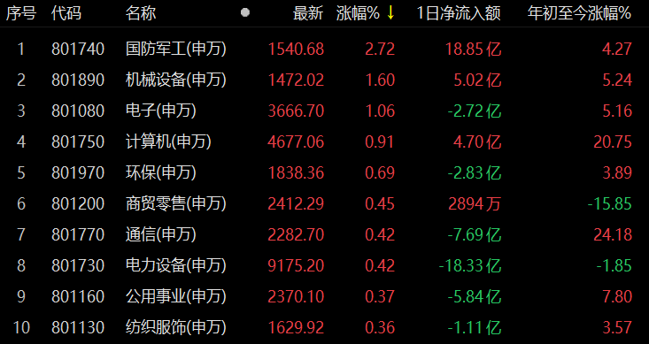 國(guó)防軍工指數(shù)逆市漲2.72%