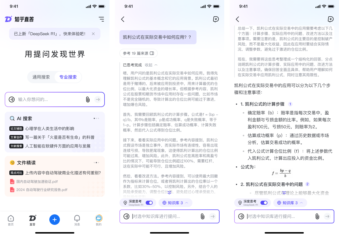 2月11日,知乎宣布旗下AI搜索產品知乎直答接入“滿血版”DeepSeek-R1,在社區(qū)優(yōu)質語料、專業(yè)知識庫基礎之上,全面升級推理能力,帶來全新AI搜索體驗。此外,知乎直答還同步上線了“知識庫”功能,助力知識工作者效率提升。