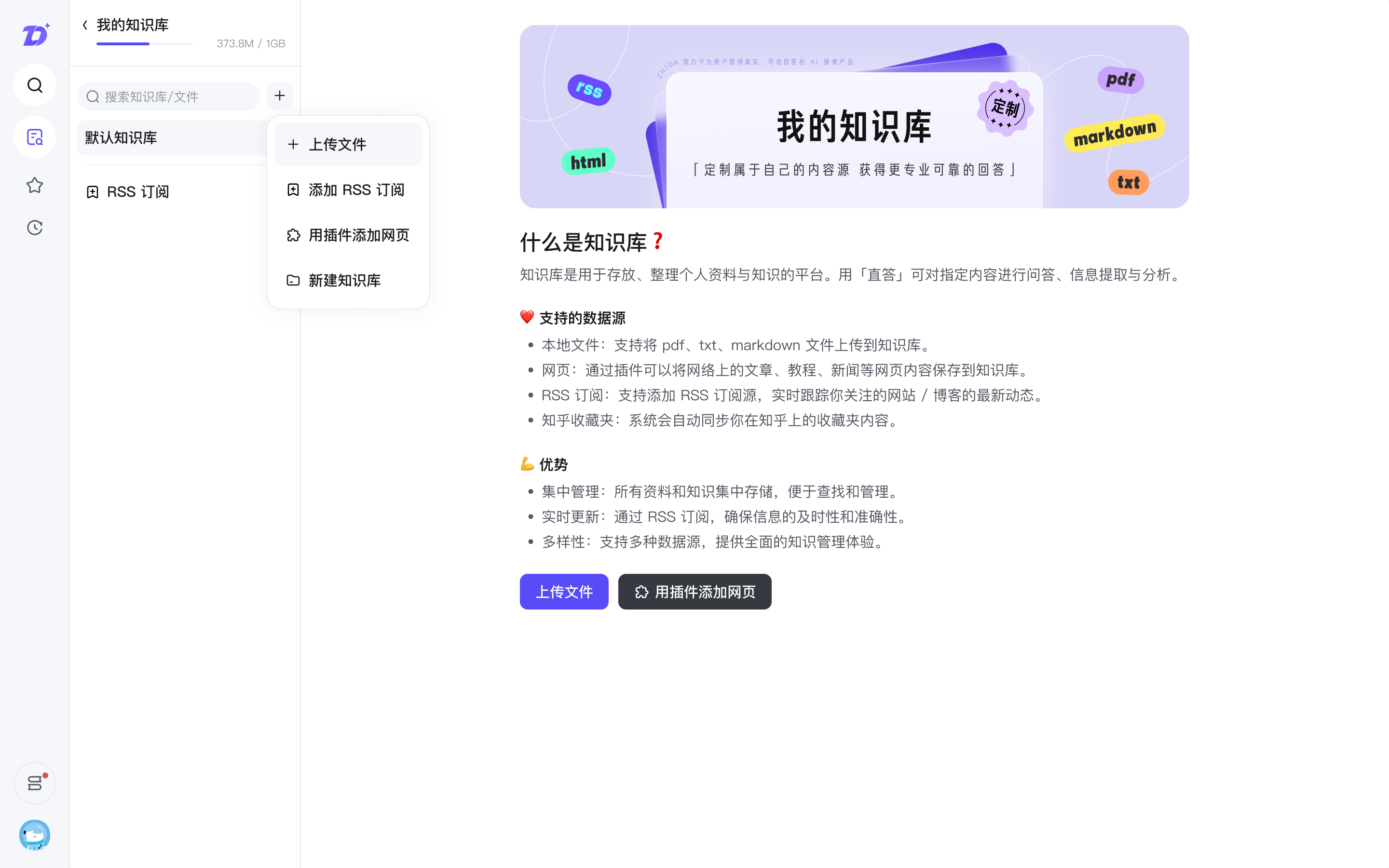 此外,知乎直答還同步上線知識庫功能,集合了本地文件上傳、網(wǎng)頁收藏、RSS訂閱、知乎收藏夾等模塊,用戶可使用DeepSeek-R1模型對論文、文檔、網(wǎng)頁、知乎問答等特有內容進行信息提取、分析和分享,便于構建和管理屬于用戶的個人知識庫。