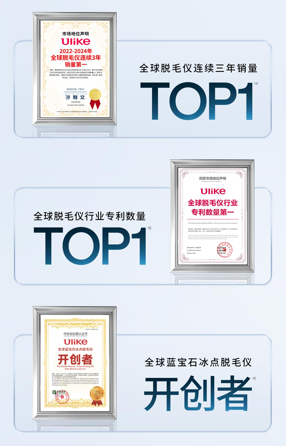 Ulike產(chǎn)品的安全性和有效性還獲得包括美國FDA、歐盟CE、日本PSE、韓國KFDA在內(nèi)的30多項國際認證,同時也是行業(yè)首家獲得三甲臨床報告認可的家用脫毛儀品牌,展現(xiàn)了其經(jīng)得住層層考驗的硬核品質(zhì)。