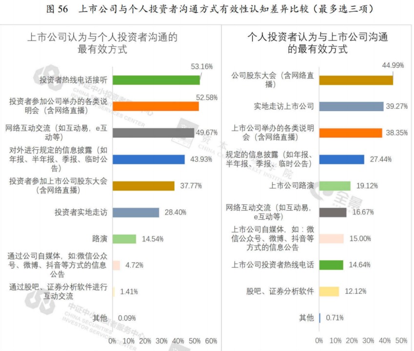另外,上市公司IR人員較難把握“合規(guī)交流”與“充分交流”的邊界,因此與機構投資者很難做到深入溝通。這也會影響溝通效果。