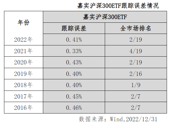 由于ETF屬于被動基金,投資者通常用跟蹤誤差來衡量一支ETF對其所跟蹤指數(shù)表現(xiàn)的擬合好壞,越低的跟蹤誤差意味著ETF的收益與指數(shù)收益越接近,也表明ETF管理方有更強的ETF基金管理能力。自成立以來,滬深300ETF的跟蹤誤差排名長期位居市場同類ETF排名前列。