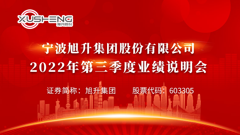 歡迎光臨證券日?qǐng)?bào)網(wǎng)。寧波旭升集團(tuán)股份有限公司2022年第三季度業(yè)績(jī)說(shuō)明會(huì)將于2022年11月16日(星期三)下午15:00-16:00,以網(wǎng)絡(luò)遠(yuǎn)程文字交流的形式在本網(wǎng)舉行。網(wǎng)上提問已經(jīng)開通,歡迎投資者積極參與。[詳細(xì)]